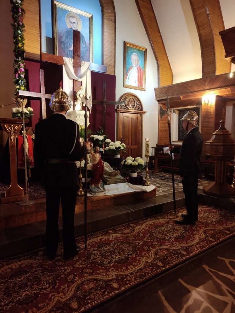 Nasi strażacy wraz z Pocztem Sztandarowym oraz strażacka młodzież włączyli się aktywnie w procesję niosąc krzyż, figurę Chrystusa, baldachim.