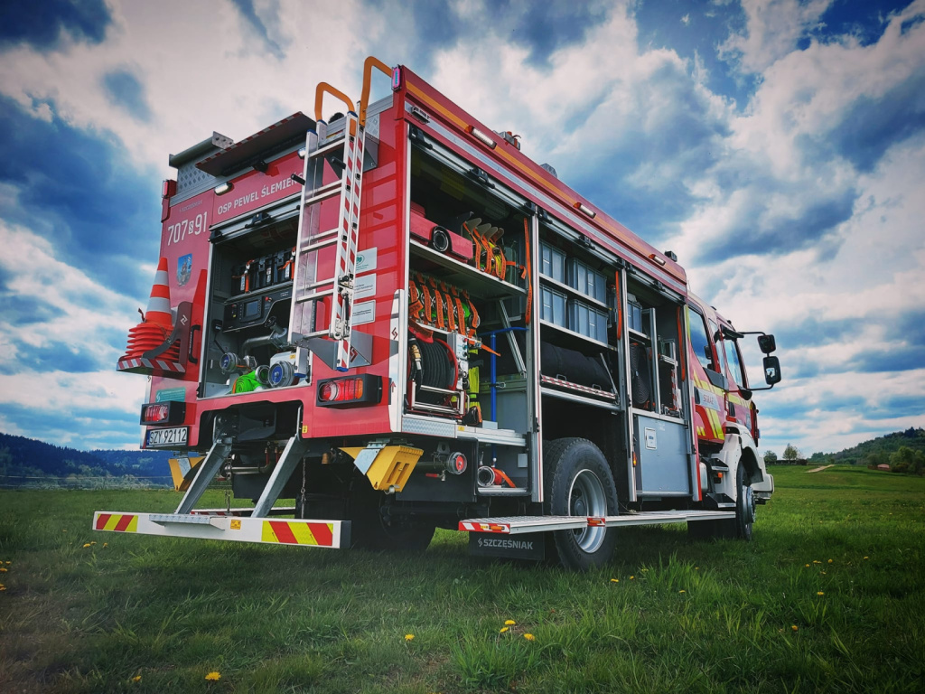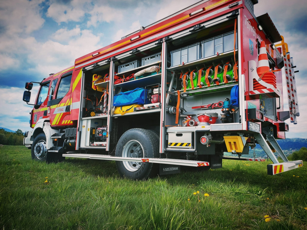 Szkielet zabudowy pożarniczej to konstrukcja samonośna, wykonana z systemowych, skręcanych profili aluminiowych. Sprzęt, armatura i węże umieszczone zostały w siedmiu skrytkach sprzętowych – po trzy z każdej strony pojazdu oraz jednej z tyłu. Wszystkie skrytki zamykane są żaluzjami aluminiowymi.
