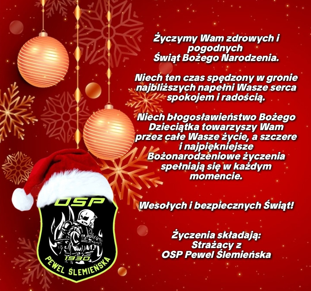 WESOŁYCH ŚWIĄT BOŻEGO NARODZENIA ŻYCZY: OSP Pewel Ślemieńska i MDP Pewel Ślemieńska