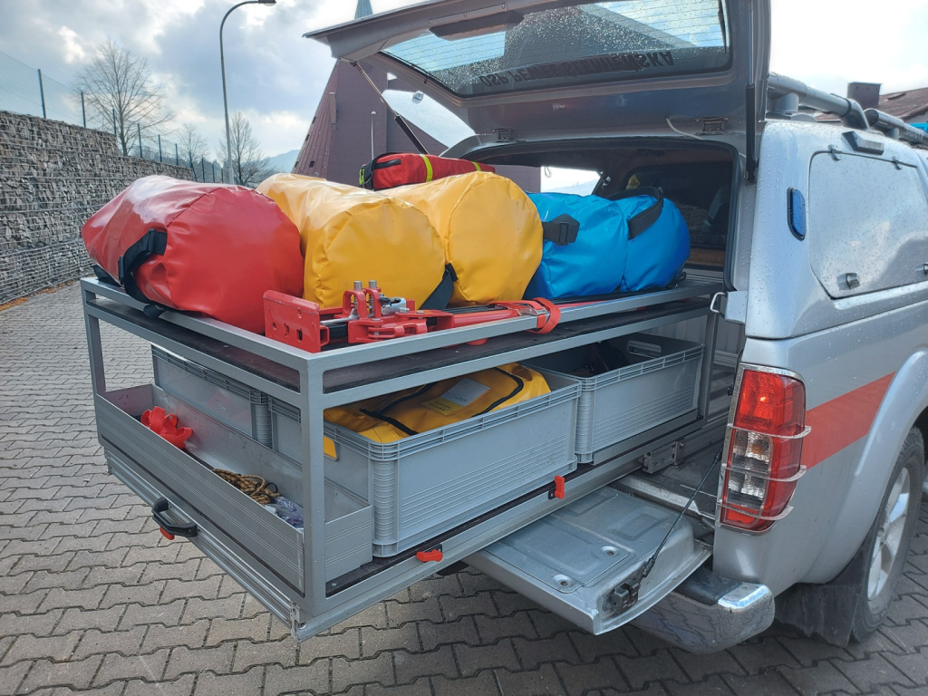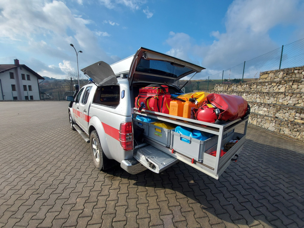 Na wyposażeniu pojazdu Nissan Navara znajduje się torba medyczna R1, radiotelefon przewoźny, pilarka, podręczny sprzęt burzący, tłumice, podnośnik Hi-lift, a także profesjonalny sprzęt do ratownictwa wysokościowego oraz trójnóg ratowniczy. Pojazd wyposażony jest w napęd 4x4, przystoswowany do przewozu pięciu strażaków. Rok produkcji 2008.